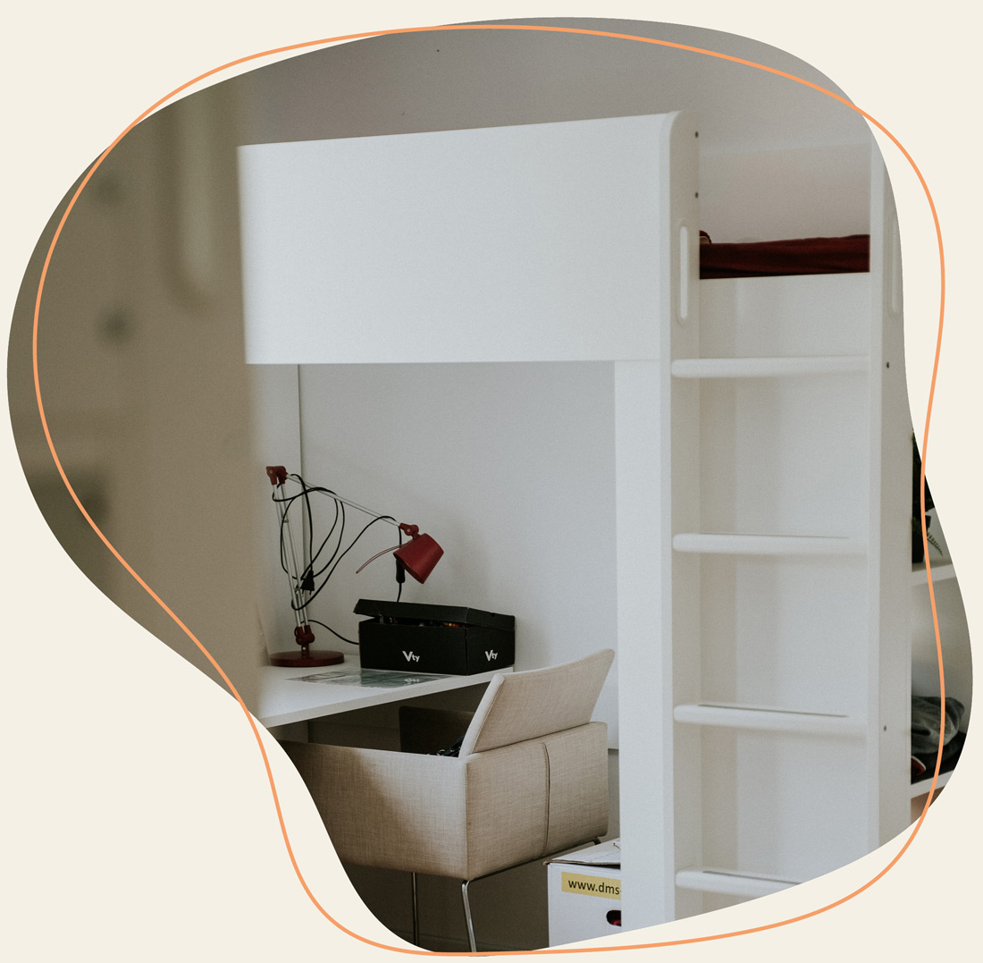 Wir haben auf unserem ACADEMY-CAMPUS Platz für max. 16 Studenten in insgesamt 4 WGs. Dort teilst du dir ein Zimmer mit 1-2 anderen Studenten. Die Unterkunft kostet monatlich 465€ inkl. Nebenkosten. Dein WG-Platz ist bereits mit Bett, Schreibtisch, Kleiderschrank und Regal fertig ausgestattet, dazu gibt es eine WG-Küche und Zugang zu Waschmaschine und Trockner.