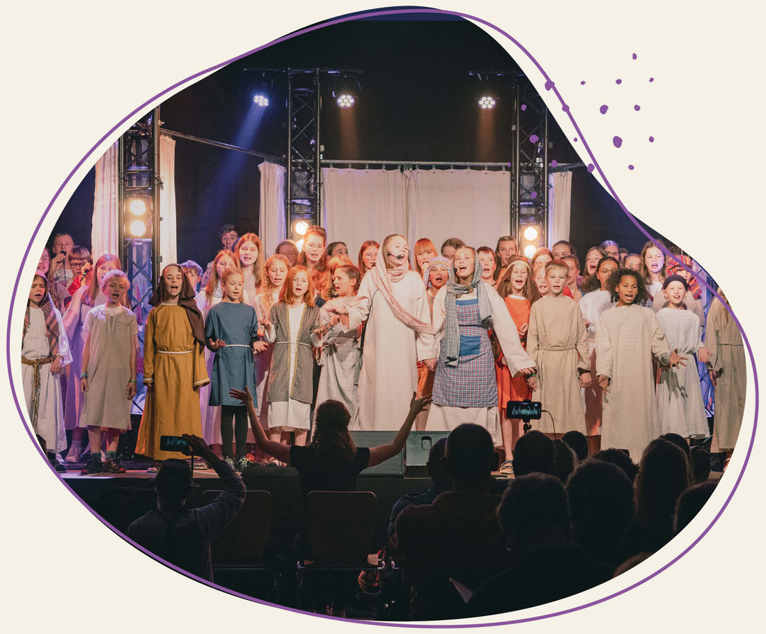 Jedes unserer Musicals basiert auf einer biblischen Person oder Geschichte. Auf der Seitenbühne werden diese Erzählungen mit Szenen aus dem Hier und Jetzt verknüpft. So schaffen wir eine Brücke zwischen der biblischen Botschaft und den Themen, die Kinder, Jugendliche und Erwachsene heute beschäftigen. Es geht um Hoffnung in unsicheren Zeiten, um die Suche nach echter Freundschaft und Werten, um Vergebung und das Vertrauen in Jesus.