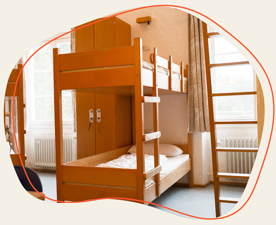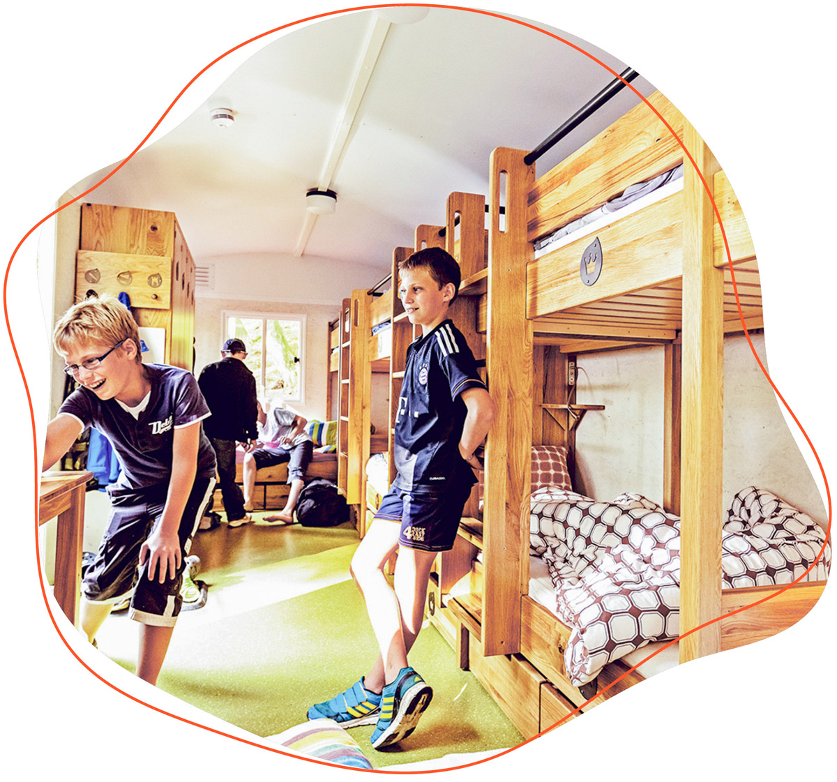 55 reguläre Betten, 18 Ausklappmatratzen/Zusatzbetten